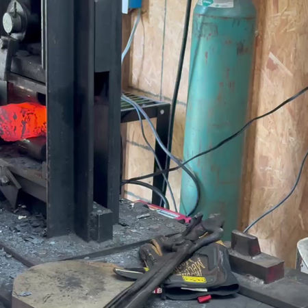 Folding and Pattern Creation: After welding, the bar is drawn out, elongated, and then folded onto itself. This folding process is repeated several times. The way the steel is folded and manipulated during this process will dictate the final pattern of the Damascus steel. Once we were done with this step, we had approximately 200 layers of steel.