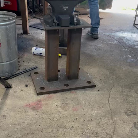 Stacking and Welding: The selected steel types are cut into pieces and stacked together. They are then welded at one end to form a single piece. This stacked bar is then heated in a forge until it is red hot. We started with 20 small billets (10 of each steel)